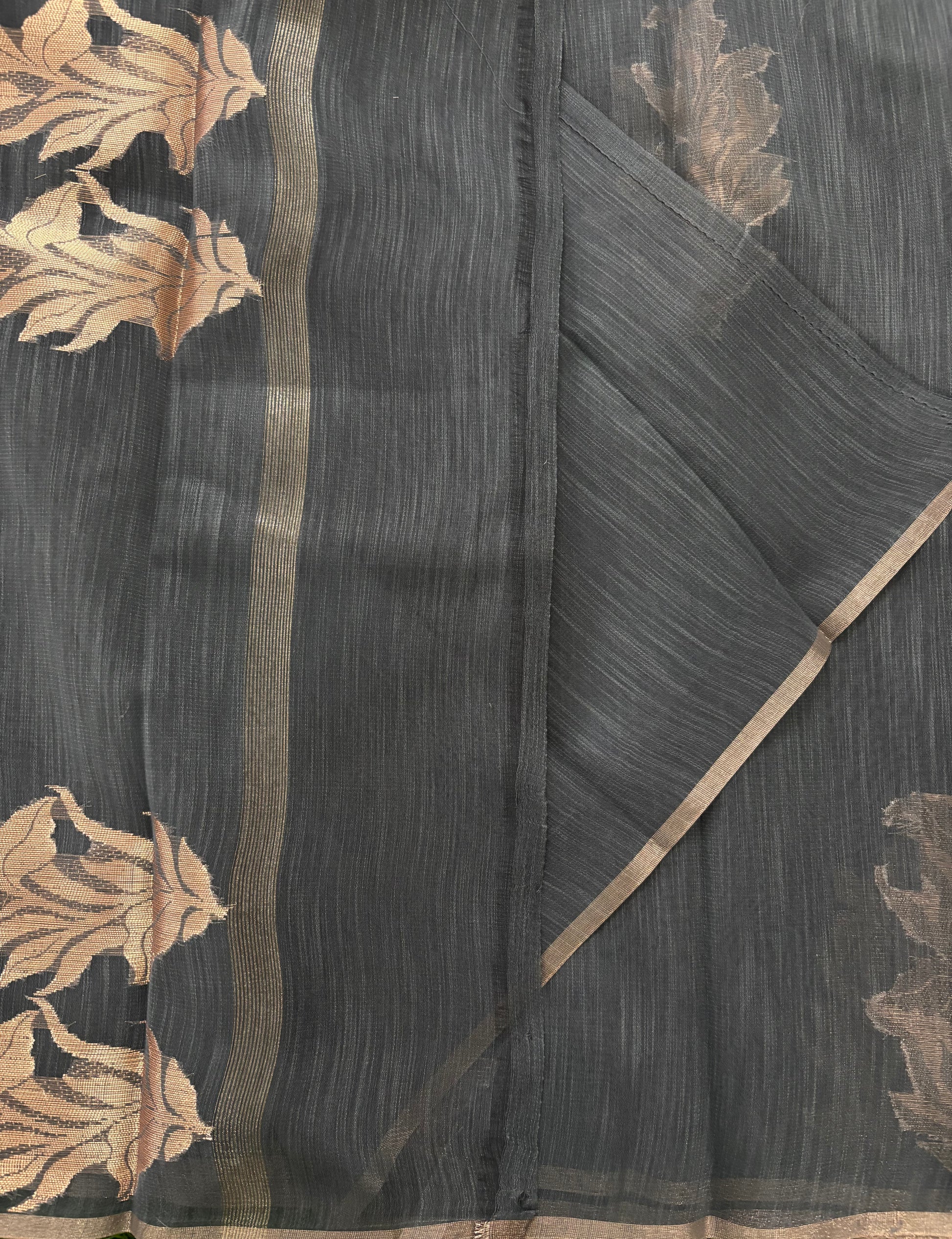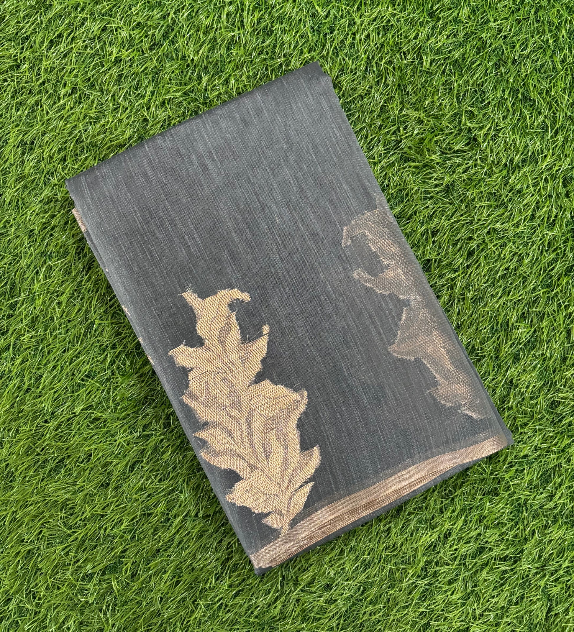 Discover the timeless elegance of this lightweight paper silk saree. Featuring intricate Banarasi motifs woven throughout the fabric, each pattern reflects centuries of weaving heritage. Delicate zari borders add a refined shimmer that elevates any occasion. The lightweight construction makes it ideal for all-day wear, whether for celebrations or everyday elegance.