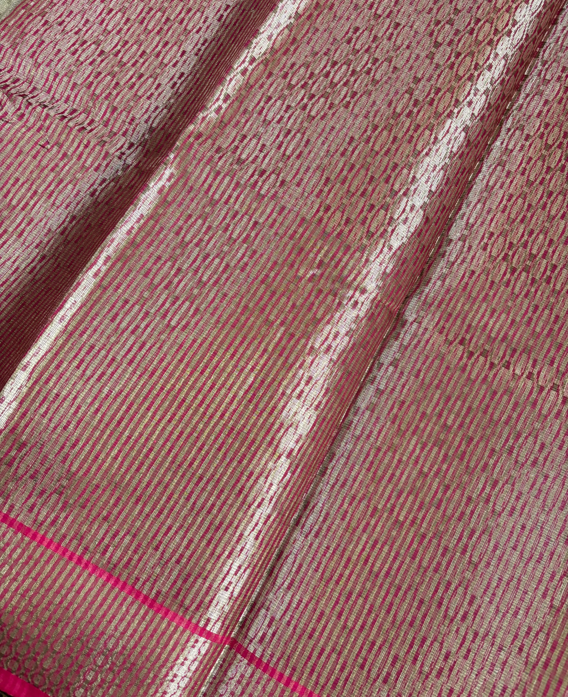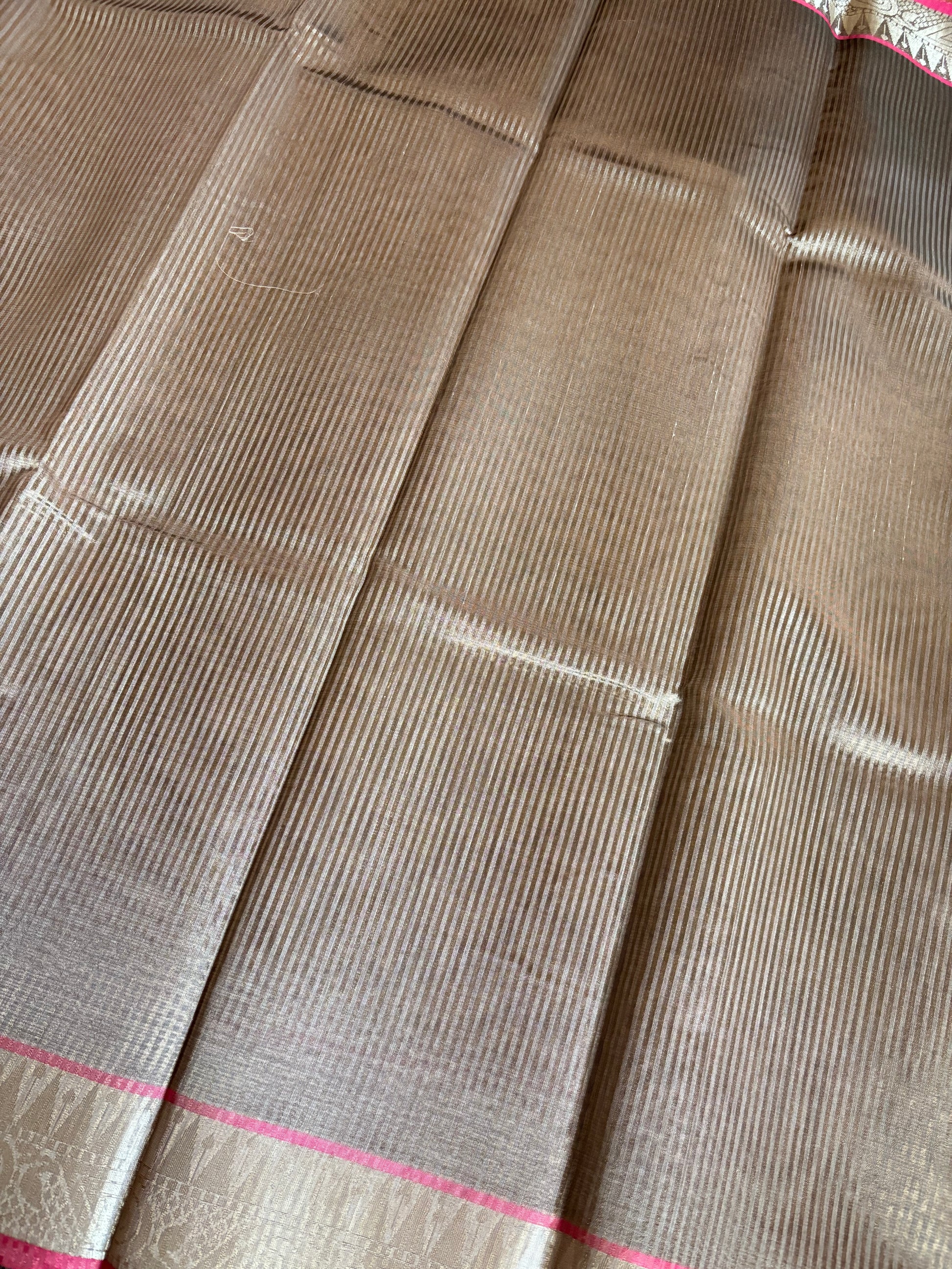 Champagne stripe tissue silk saree