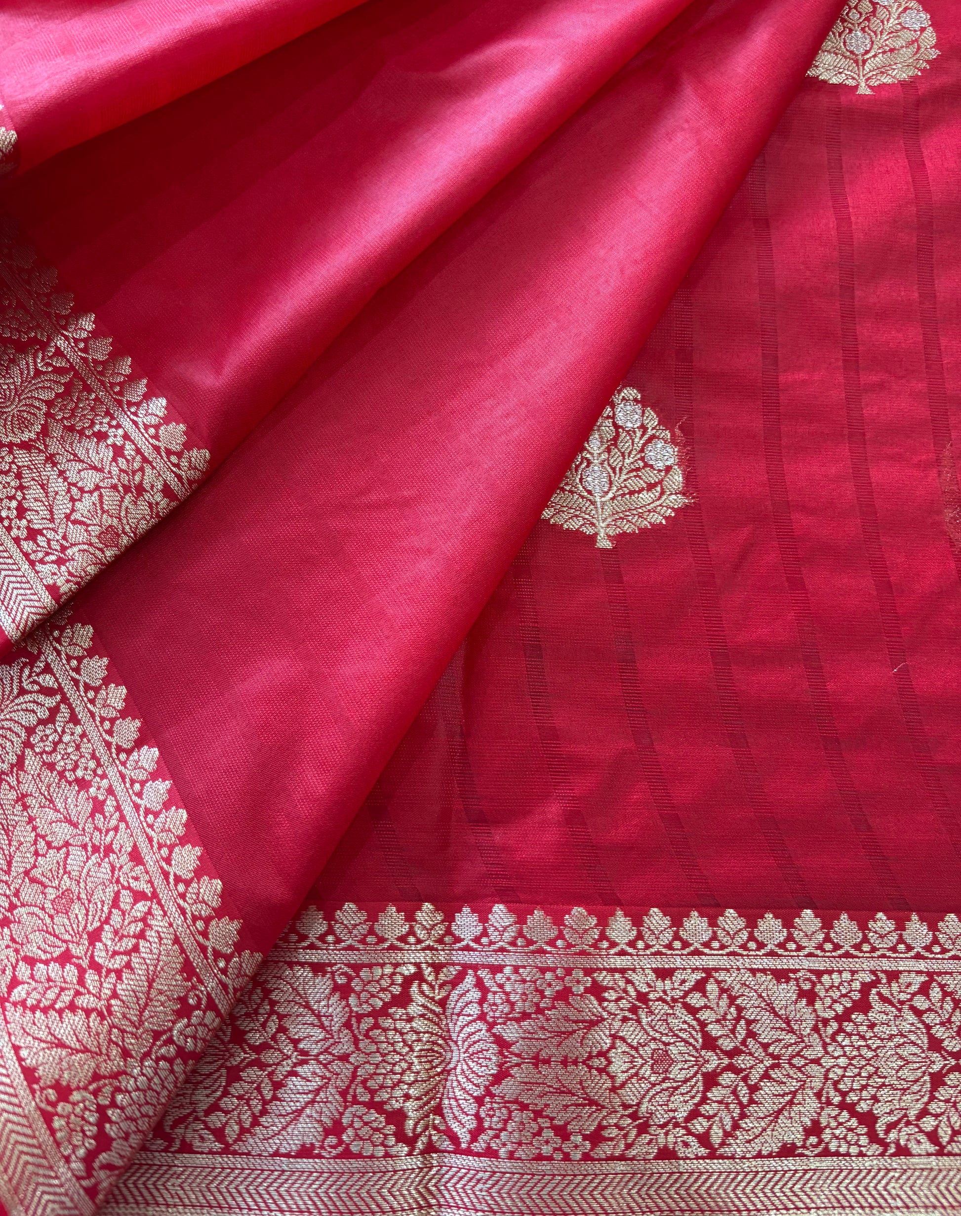 Elevate your ethnic wardrobe with this exquisite chinnon checks semi silk saree in striking chilli red. The lightweight chinnon fabric drapes beautifully while maintaining its structure, making it ideal for both casual gatherings and festive occasions. Adorned with authentic Banarasi borders that showcase intricate traditional weaving, this saree seamlessly blends contemporary checks with timeless craftsmanship. The rich chilli red hue commands attention while remaining versatile enough to pair with various blouse styles.