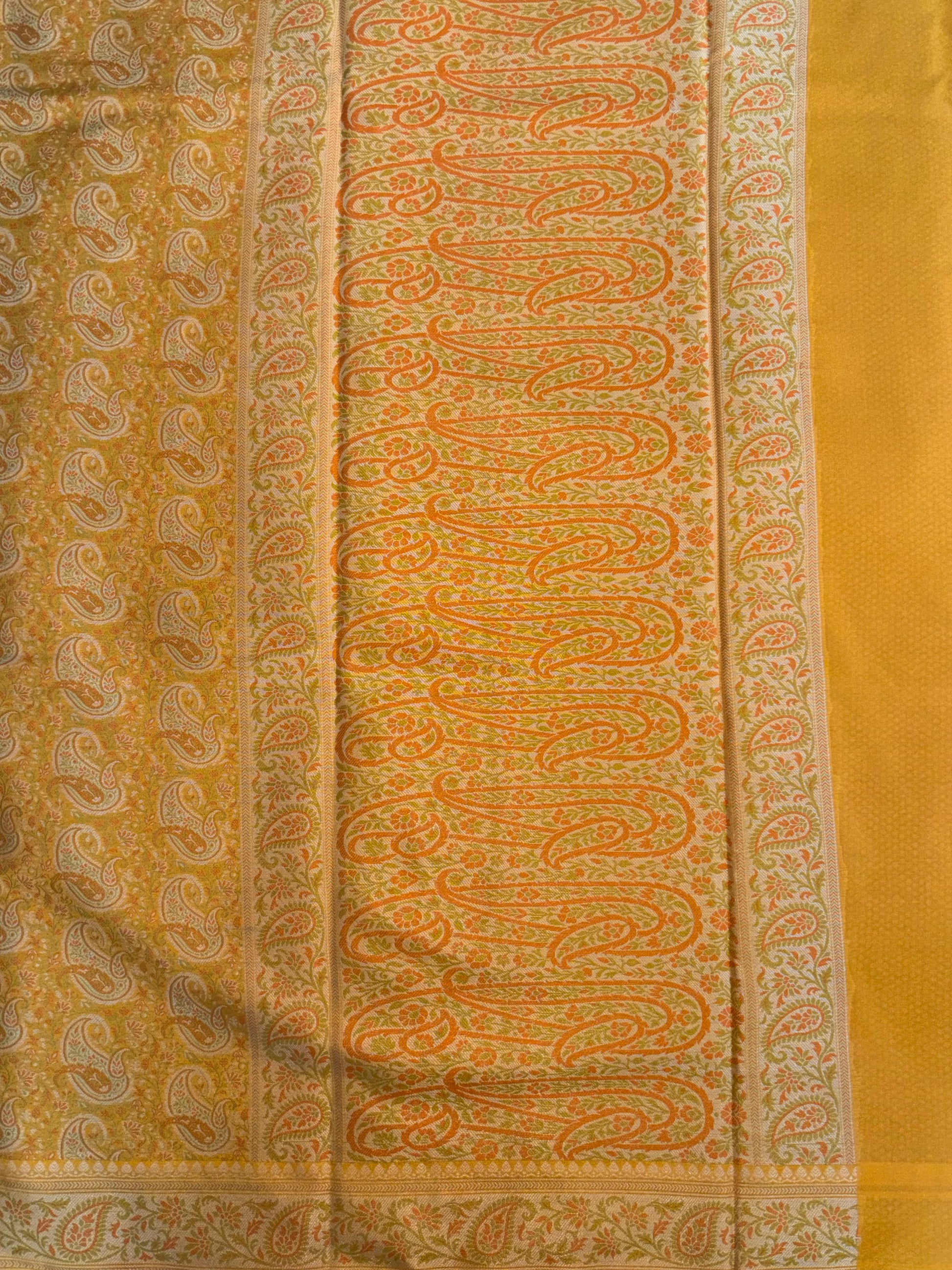 Yellow Pashmina silk saree