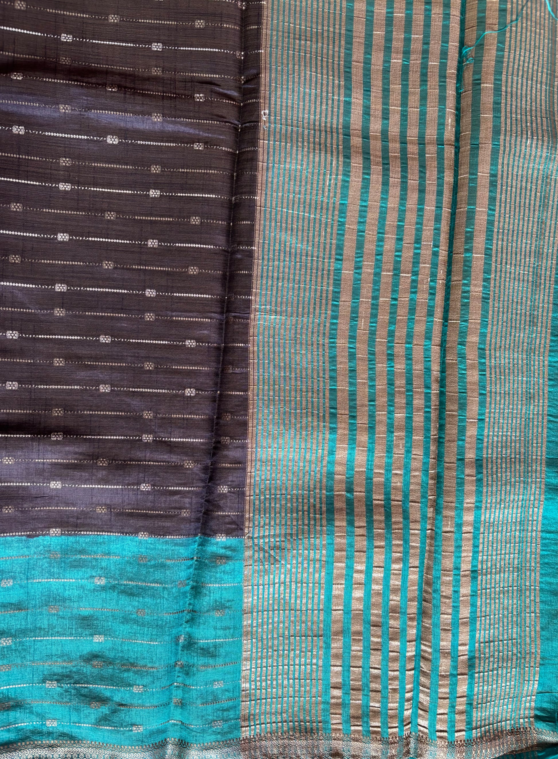 Elevate your ethnic wardrobe with this exquisite semi tussar silk saree, Woven in a sophisticated navy blue and ananda blue combination, this saree showcases intricate silver zari borders that add timeless elegance and luminous detail. The semi tussar fabric offers a luxurious drape with a subtle texture, making it ideal for festive occasions, celebrations, and formal gatherings. The interplay of rich blue tones creates depth and visual interest, while the gleaming silver zari work elevates the overall aesthetic.