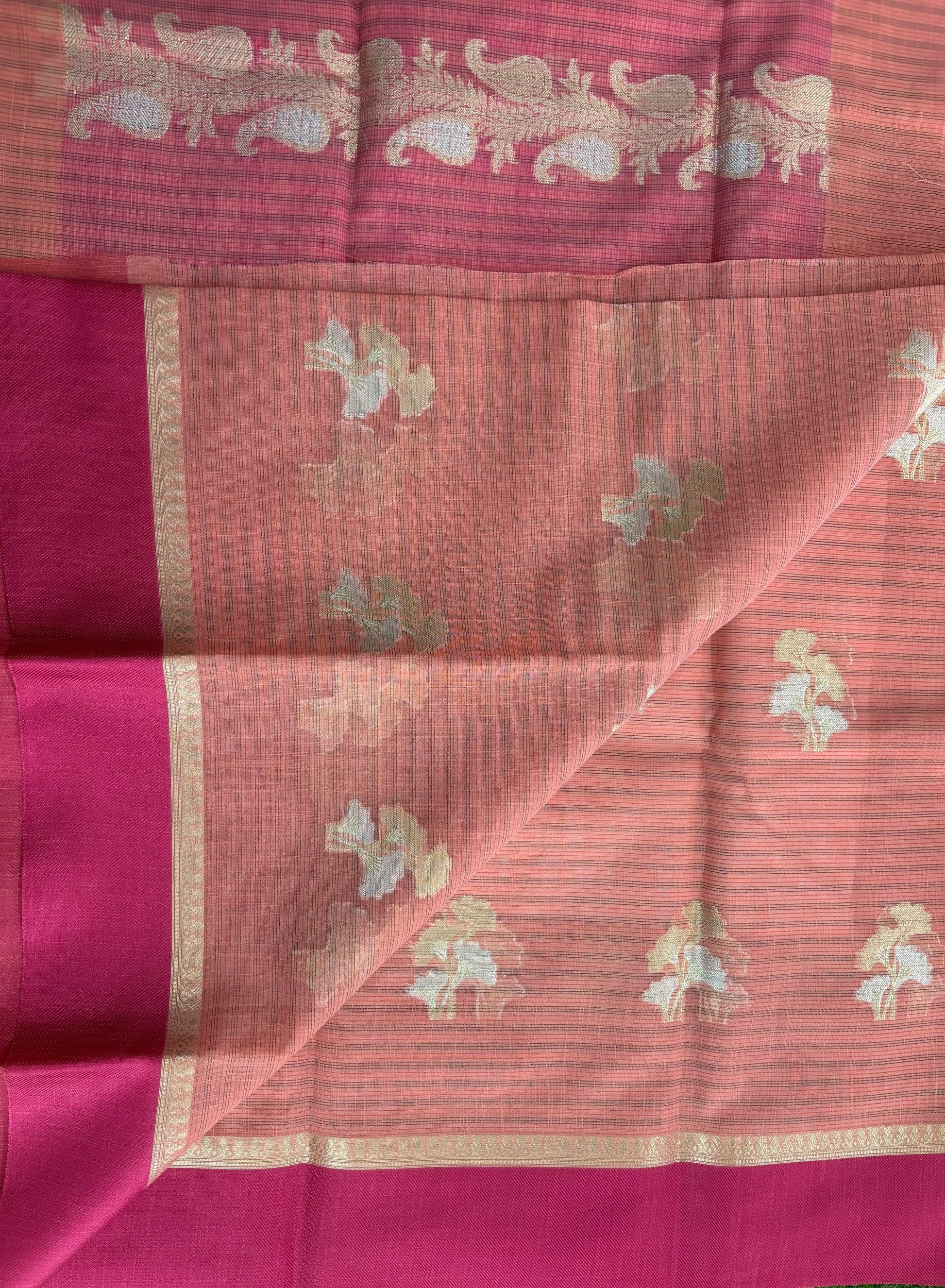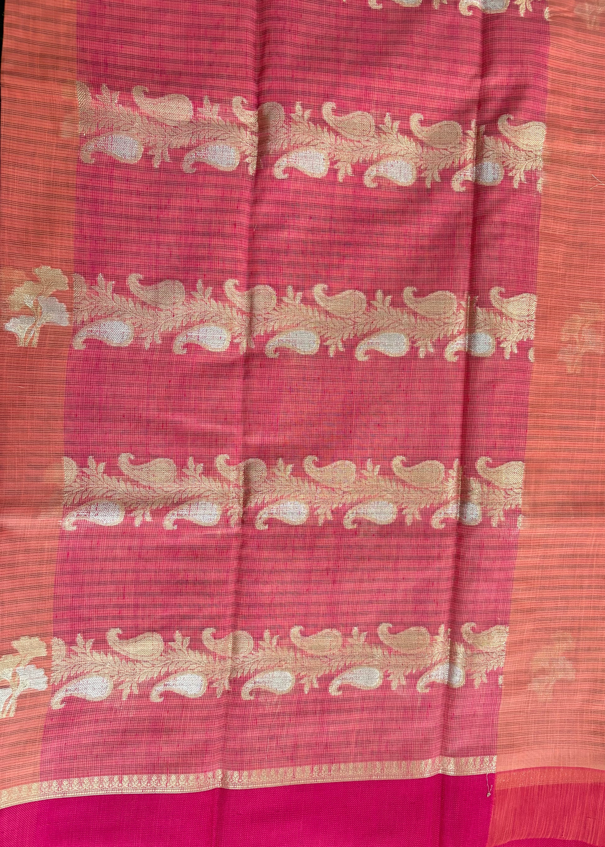 Peach Soft Kora Banarasi saree with satin borders
